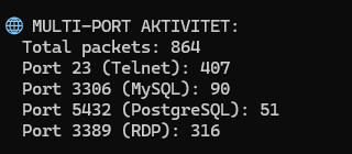 - PostgreSQL (Port 5432): 51 packets (~6%).